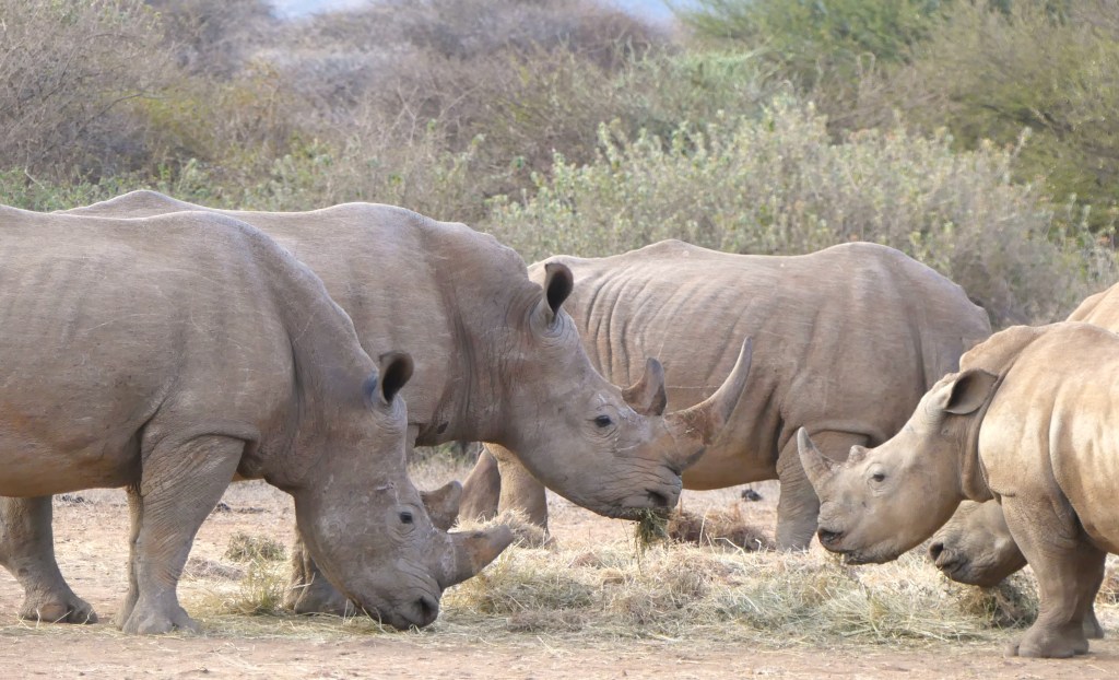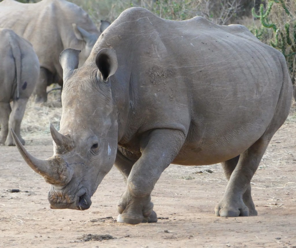 But most of all I was very excited to see the Sothern White Rhino and I was so fortunate to be able to see them at feeding time in April. Since there had been a long drought in the area, it was necessary for the conservancy to find a way to feed the endangered rhinos… it was a very special sighting! I also learnt that they are called white rhino, not because of any colour difference from the black rhino, but because of it’s wide jaw, as they are grazers (the black rhinos are browsers). And apparently it was a ‘lost in translation issue’ – wide in Afrikaans sounds like white!