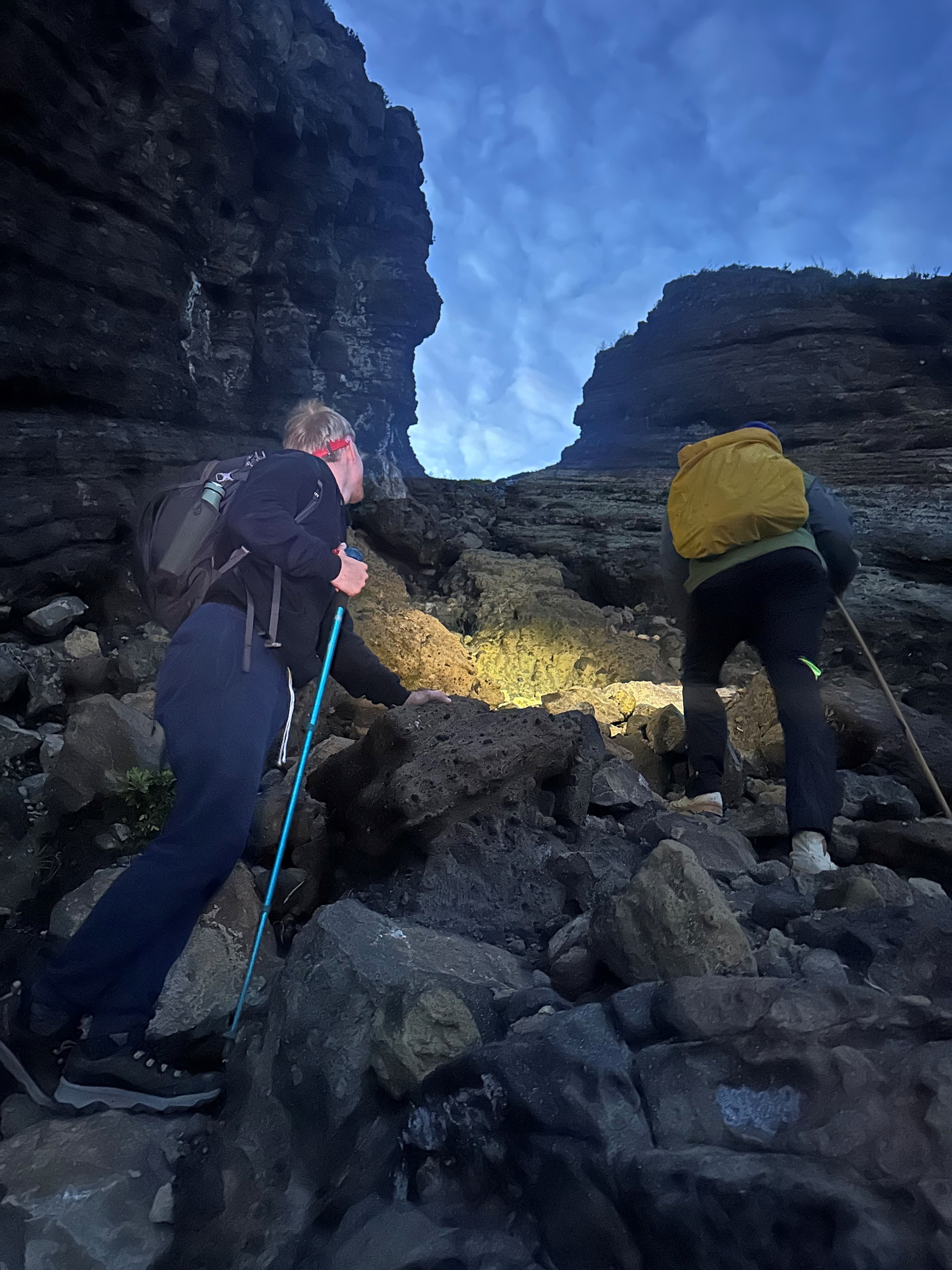 We started our climb at 00:25 – headlamps on and spirits high – but we were only about 50 minutes in when I realised I should have really done some serious training for this climb – it was tough almost immediately… well it was for me, Valdemar was cruising it!